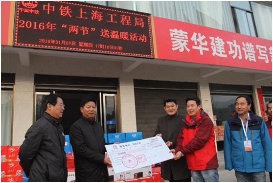 1月7日下午,集團(tuán)公司黨委書記梁永興、工會主席王輝州一行在市政公司黨委書記陳建鳴的陪同下,來到蒙華鐵路16標(biāo)項(xiàng)目部,看望慰問了堅(jiān)守在一線的項(xiàng)目職工,并為大家送去了慰問金和慰問品。