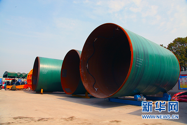 圖為黃浦江上游水源地連通管工程C5標段項目部場地內置放的鋼管。