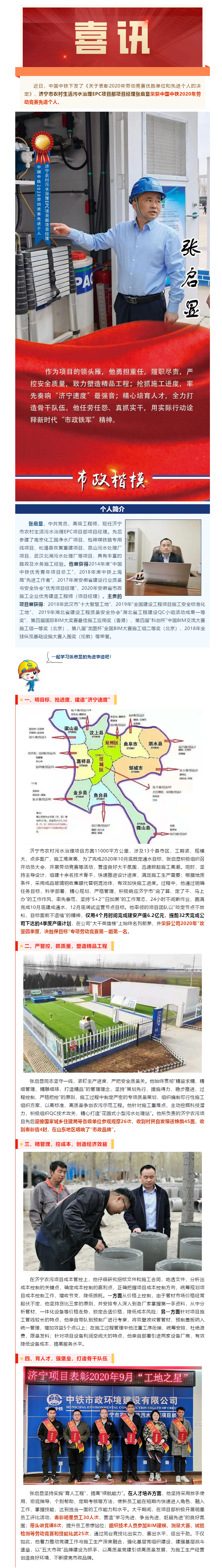 濟寧項目部項目經(jīng)理張啟顯榮獲中國中鐵2020年勞動競賽先進個人